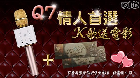 只要1,790元(含運)即可享有原價3,560元Q7第三代藍芽麥克風K歌神器(正原廠公司貨)1入,享保固一年,加贈華納威秀電影票2張。